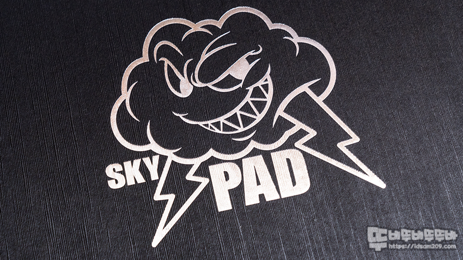 전면에 스카이 패드 로고는 은박 처리가 되어 고급스러운 느낌을 줍니다.