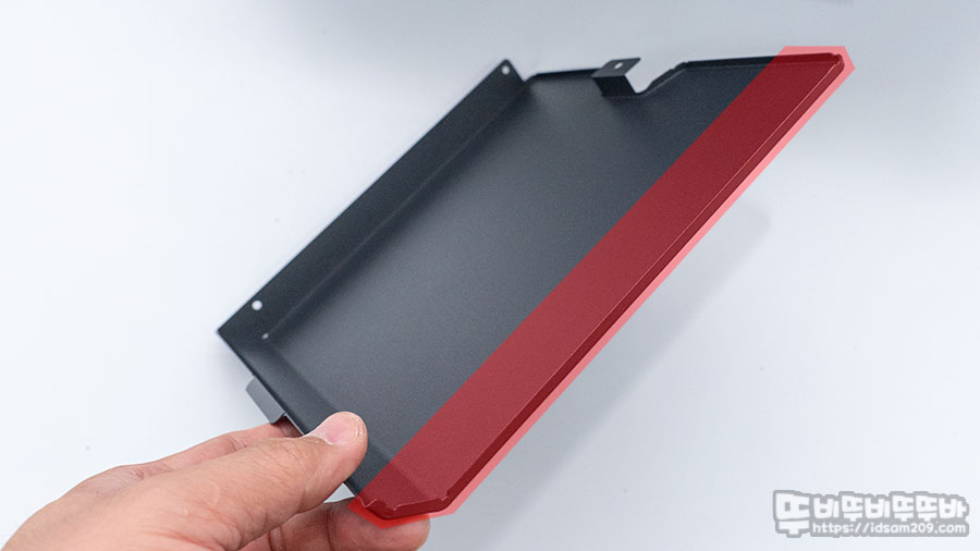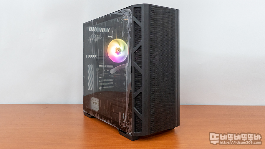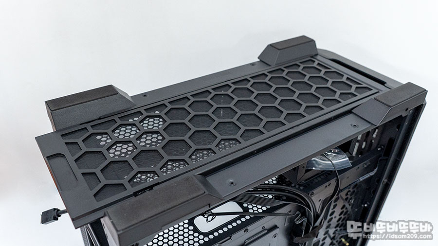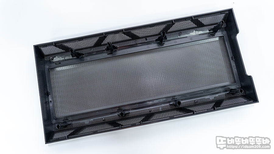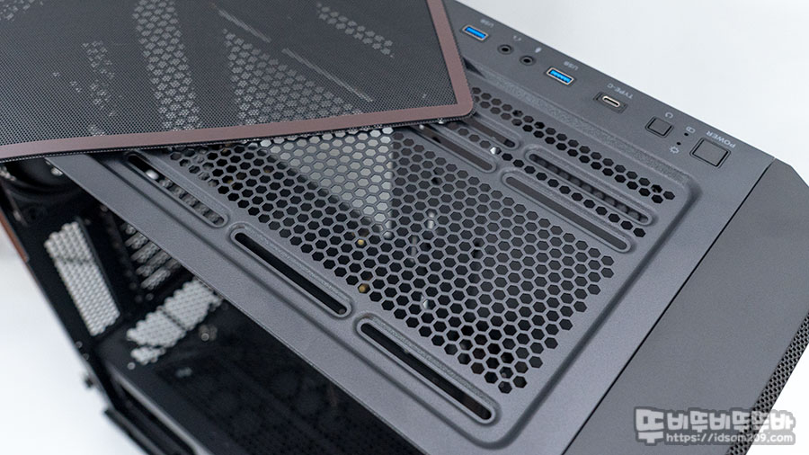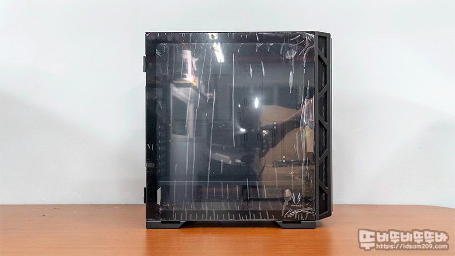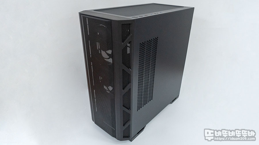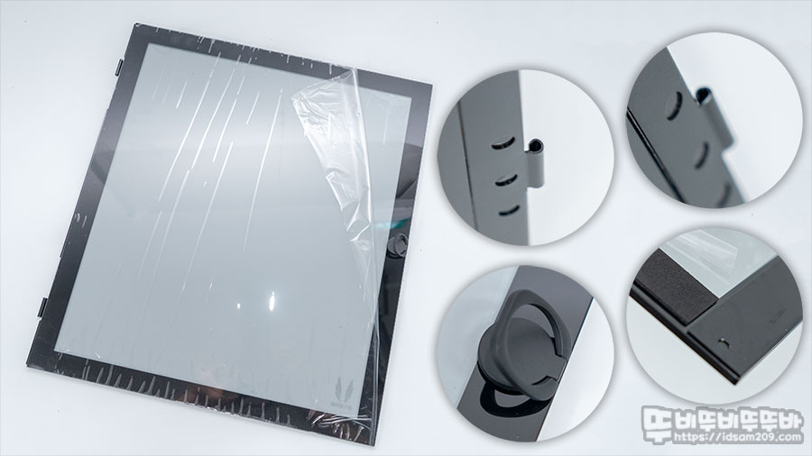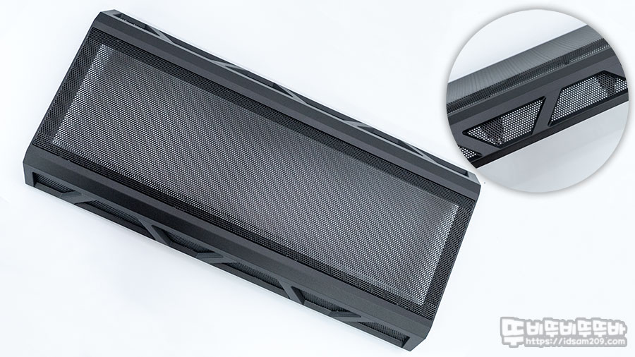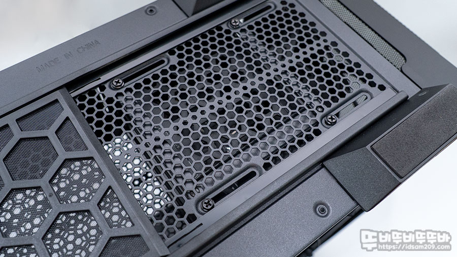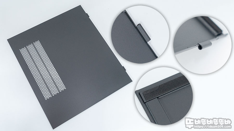 뒤쪽에 위치하게 되는 철재 사이드 패널도 전면에 강화유리 패널과 비슷한 구조로 측면 공기 유입을 위해 타공 처리된 게 특징입니다.