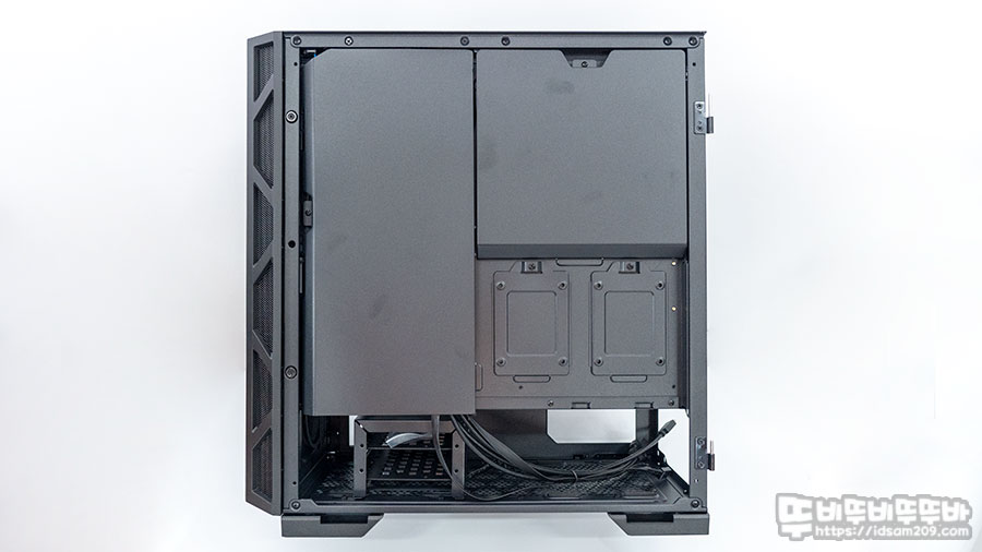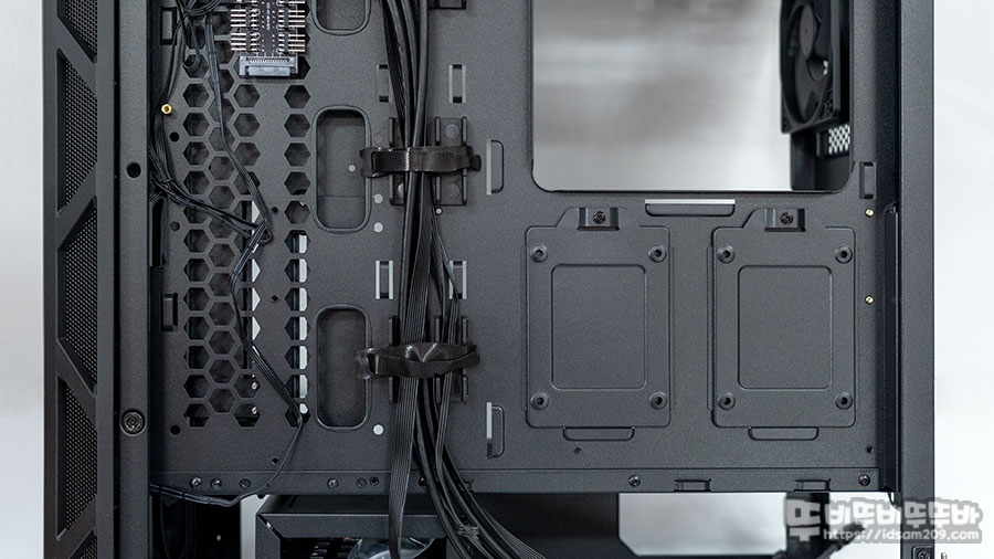 샤시 뒷면을 살펴보면 케이블 정리를 대충 해도 깔끔하게 보이게 하는 커버가 눈에 들어옵니다.
