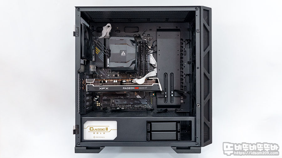 커버를 제거하면 여느 케이스 샤시 뒷면과 동일한 모습을 확인할 수 있는데