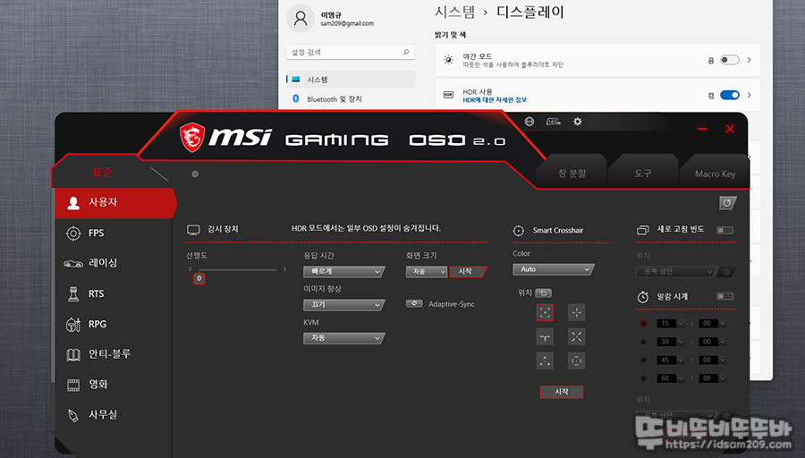 특히 HDR On/Off에 따라 OSD 프로그램을 사용할 수 있는 기능이 제한되니 참고하세요.