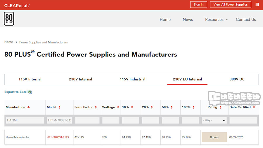 80Plus 인증 홈페이지(https://www.clearesult.com/80plus/)에 접속하여 제품의 KC 인증 모델명 HP1-N700ST-E12S을 검색 보면 Bronze 등급을 받은 것을 확인이 가능하며 Cybenetics (https://www.cybenetics.com/) 홈페이지에 방문 시에도 전력 효율 인증 ETA에서 브론즈 등급 그리고 소음 인증 LAMBDA 스탠다드 획득을 확인할 수 있습니다.