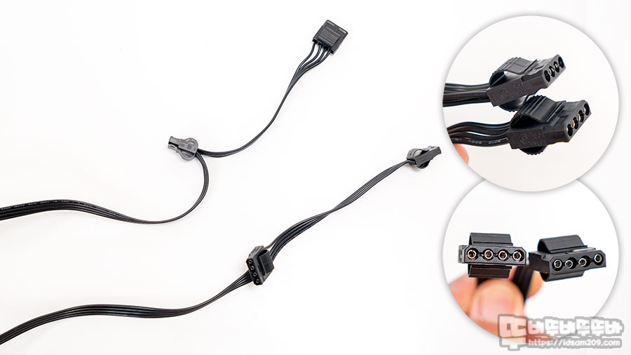 450+150+150mm 길이의 SATA 케이블 2개로 구성되어 있으며 케이블당 3개의 커넥터를 확인할 수 있는데요.