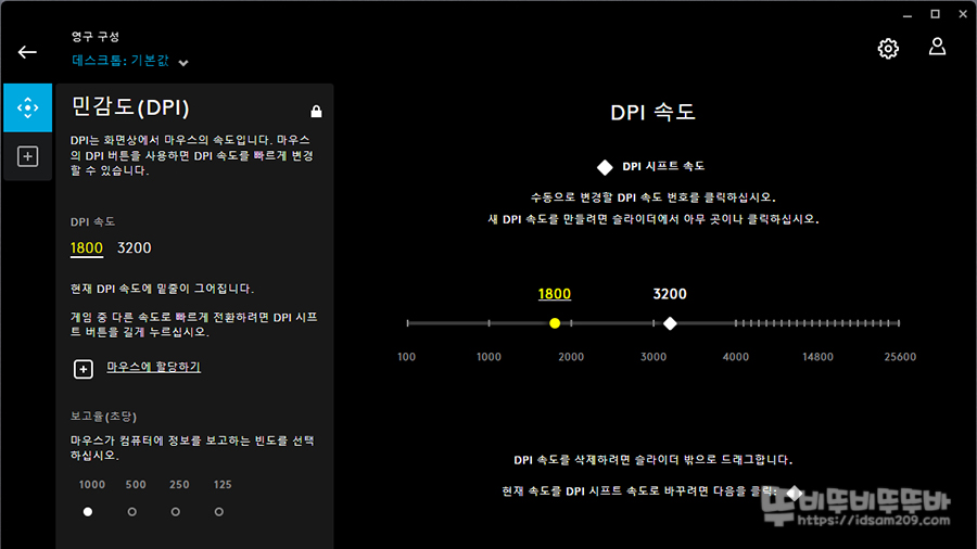 평소에 3200 DPI를 즐겨 쓰는 편인데 유리 피트를 장착하고는 감도가 너무너무 빨라져서 1800 DPI로 변경해야 이전 피트 사용 시 3200 DPI과 비슷한 느낌을 받았습니다.