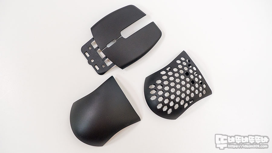 타공 커버와 솔리드 커버 교체 모습을 살펴보면 팜 커버의 디자인은 동일하기에 마우스 그립에는 영향을 주지 않으며 취향에 따라 사용하시면 좋을 거 같습니다.