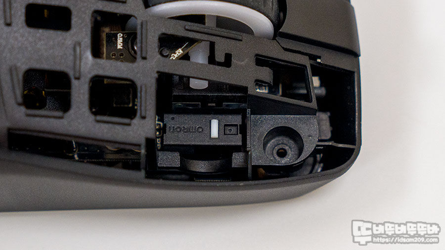 TITAN GT AIR 무선 마우스는 팜 커버 이외 버튼 부분 커버도 분리가 가능한데 특별한 건 없지만 버튼 부분의 커버 오픈으로 옴론 스위치 모습을 확인할 수 있습니다.