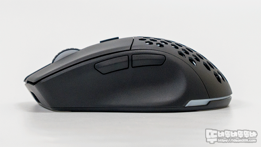 버튼과 마우스 좌우 사이드 그립 그리고 타공 커버 사용으로 손바닥의 습기가 없는 쾌적한 마우스 사용이 가능하기에 장시간 게임 플레이를 하는 경우 이전의 제닉스 AIR 시리즈보다 편안하게 사용하실 수 있으실 거 같습니다.