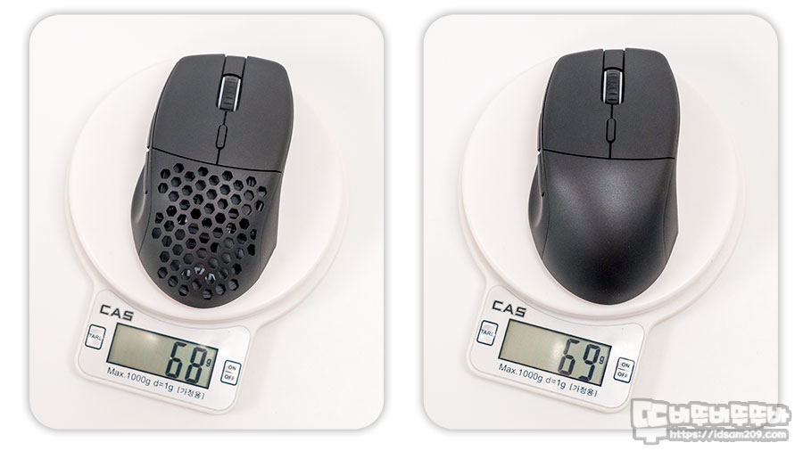 TITAN GT AIR 무게는 타공 커버 사용 시 약 68g, 솔리드 커버 사용 시 약 69g, 무선 리시버 추가 시 약 1g 무게가 추가되며 전체적으로 60g대의 경량형 무게감으로 사용 및 휴대 시 무게에 대한 부담감이 없는 편입니다.