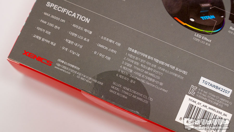 측면에는 TITAN GT AIR WIRELESS 모델명을 확인할 수 있네요.