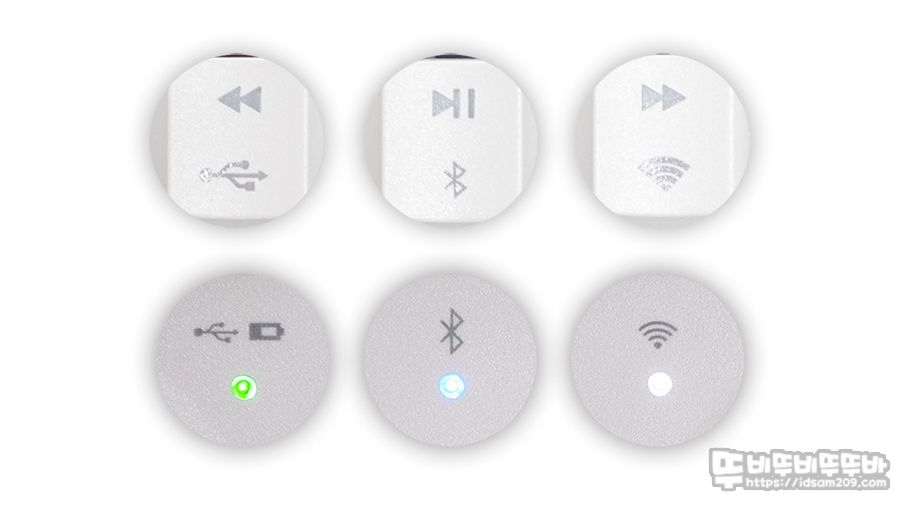 유선 연결 시 Green LED로 점등되기에 완충에 대한 LED 표현이 유선과 혼동될 수 있으니 가급적 배터리 잔량은 소프트웨어를 통해 확인하시는 걸 추천드립니다.