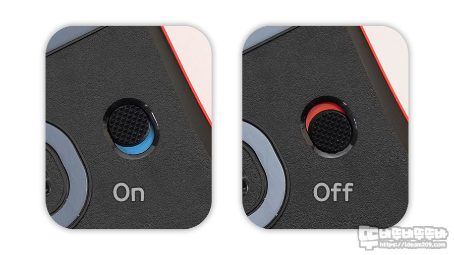 하단부의 전원 스위치는 On/Off에 따라 스위치 여백의 컬러를 달리하고 있어 중국산 짝퉁과 비교할 수 있는 포인트이기도 합니다.