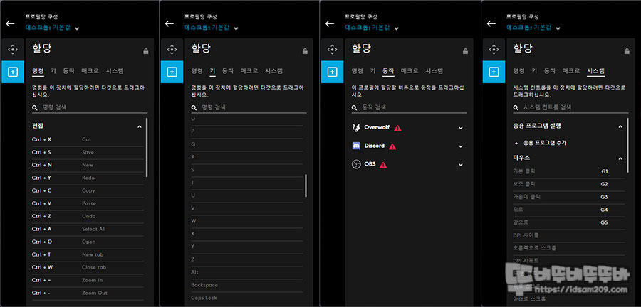 그밖에 응용 프로그램 지정, 시스템 명령, 매크로 컬러 등의 활용을 지원합니다.