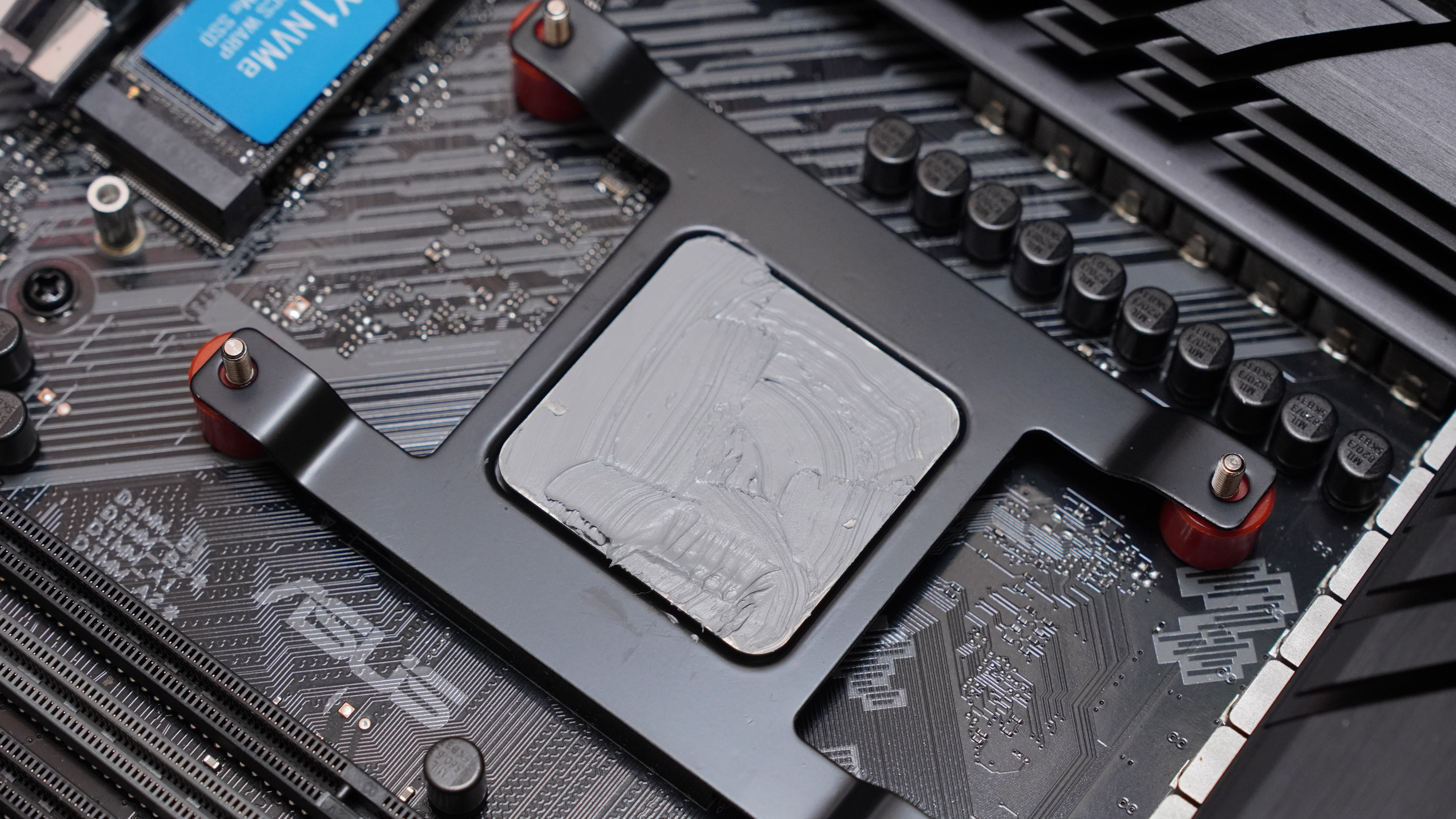 써멀 구리스를 주사기로 짜고 스크래퍼로 펴서 도포를 했는데 점성이 엄청났습니다. 이 정도면 그냥 찰흙이라고 해도 될 거 같다는...