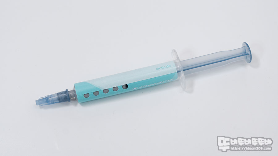 4g 용량이 주사기에는 기본적으로 MX-6 관련 라벨이 부착되어 있으며 주사기 뒤쪽에 타공 형태를 통해 써멀 구리스 잔량 확인이 가능하게 디자인되었네요.