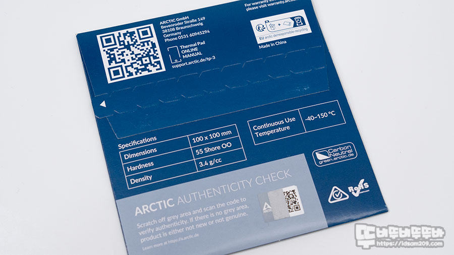 리뷰로 소개하는 제품은 100x100 사즈에 1mm 두께로 보편적으로 사용할 수 있는 제품이기에 써멀 패드가 필요하신 분들은 아틱의 신제품인 TP-3를 선택해 보시는 것도 좋을 거 같네요.