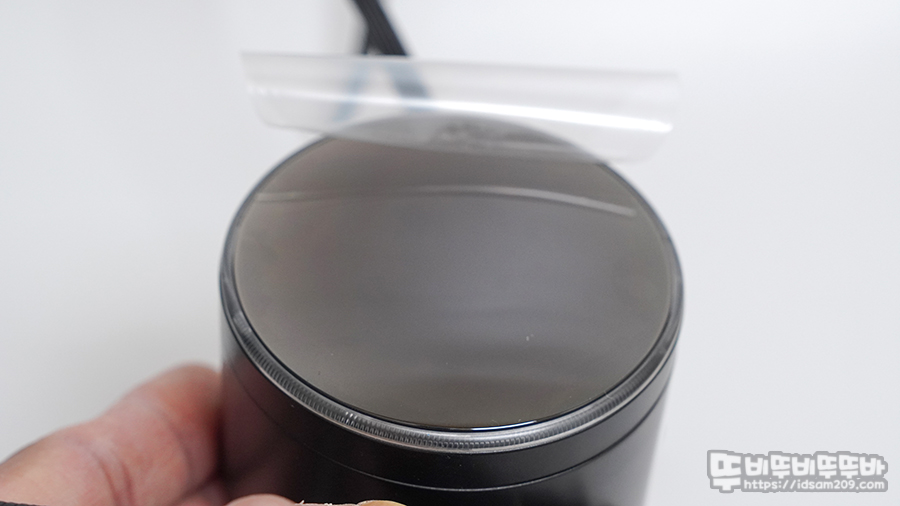앞서 설명했듯이 워터블록 윗부분은 볼록렌즈 구조로 비치는 사물이 왜곡되는 것을 확인할 수 있는데 수랭쿨러가 작동 시 온도계가 잘 보이는 역할을 하는 거 같네요.