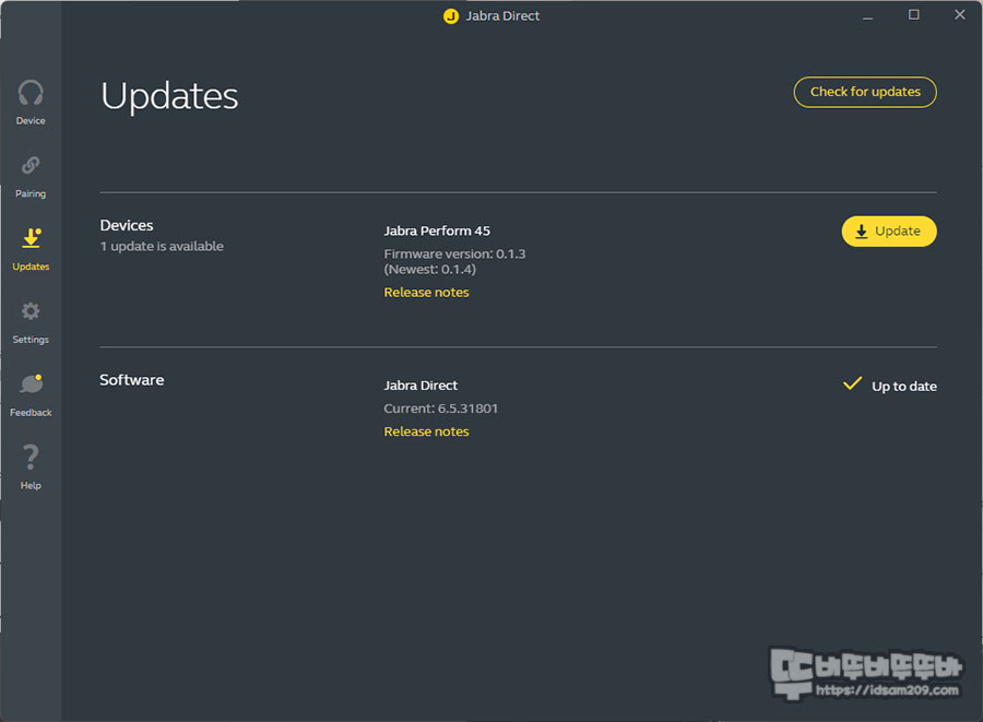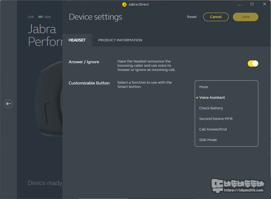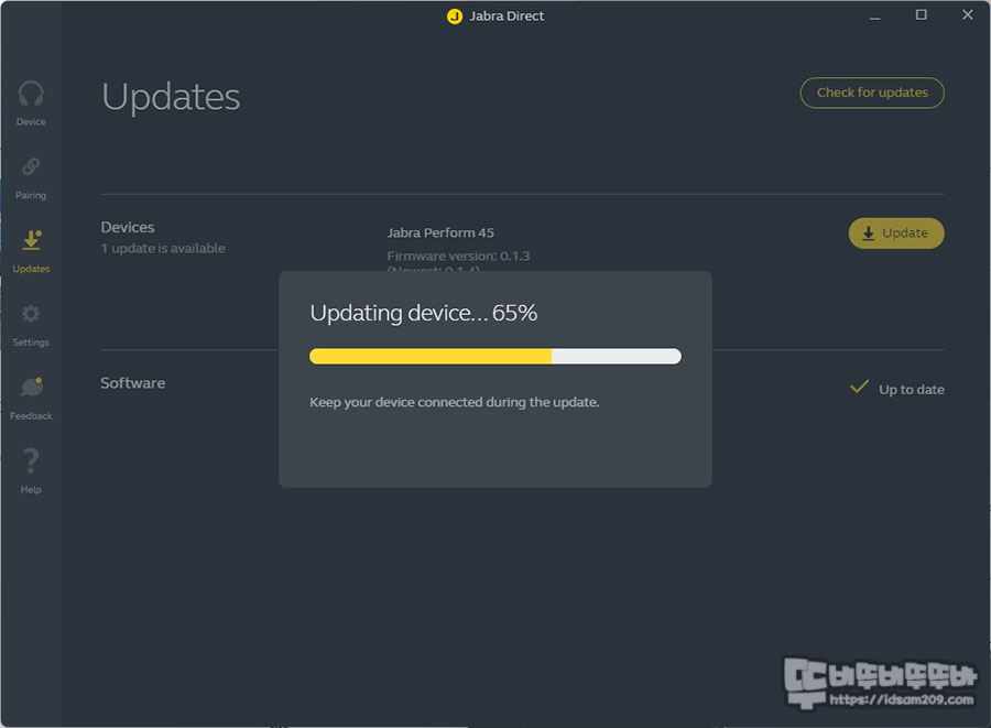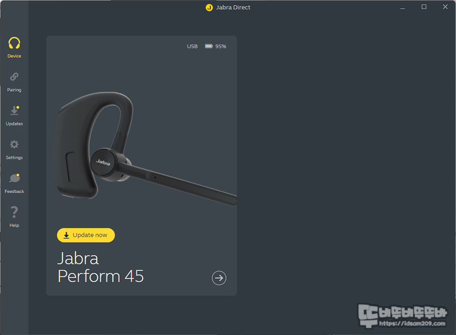 자브라 Perform 45의 설정을 도와주는 Jabra Direct 모습입니다. PC에 USB로 연결하게 되면 연결된 제품이 나타나게 되는데요.