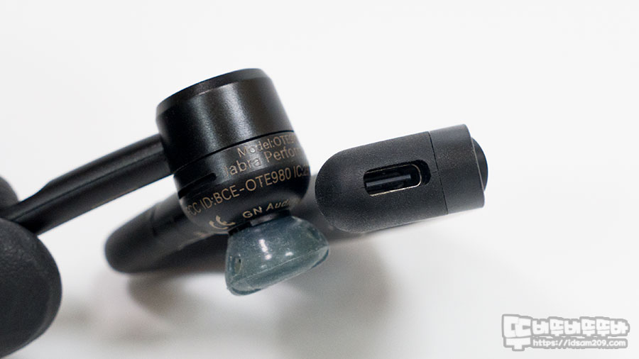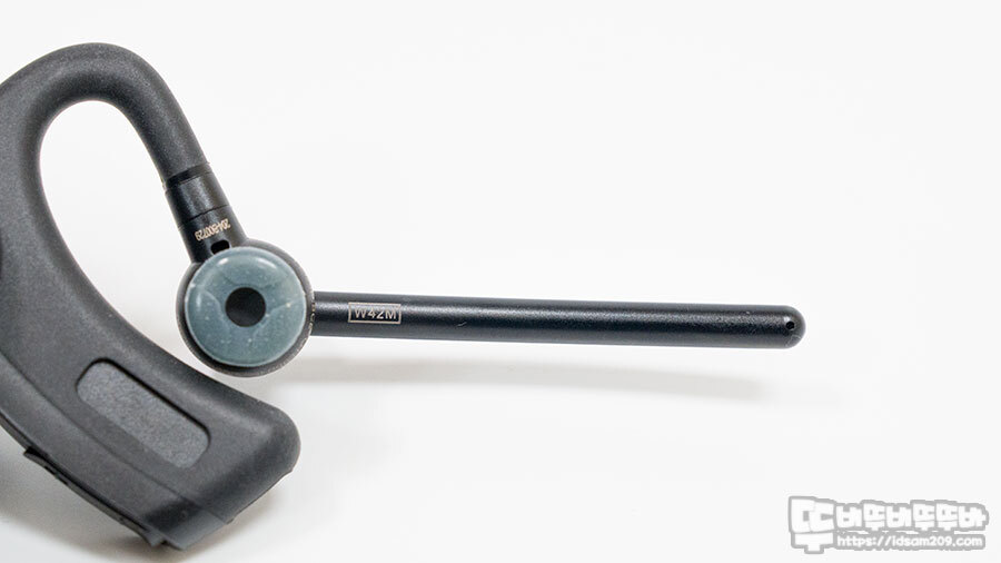 전화 통화에 도움을 주는 65mm 길이의 붐 마이크와 겔 타입 이어팁 모습.