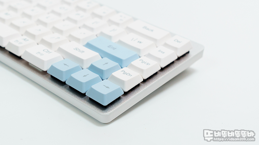 화이트 모델은 Enter키와 방향키에 블루 컬러 키캡을 사용하여 포인트를 주는데 키캡 놀이가 불가능하기에 없는 것보다 나은 듯하네요.