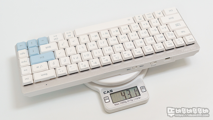 다얼유 EK868 블루투스 유무선 로우 프로파일 LP 슬림 기계식 키보드는 약 431g 무게로 휴대에 부담이 없네요.