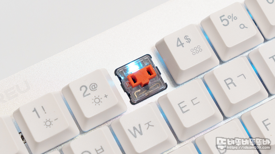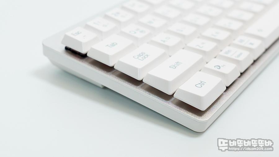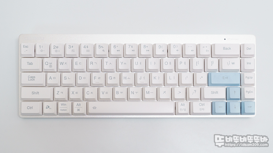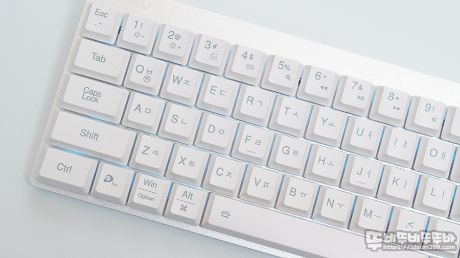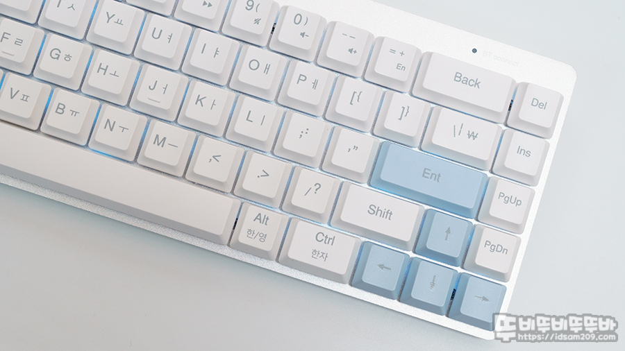 화이트 모델은 Enter키와 방향키에 블루 컬러 키캡을 사용하여 포인트를 주는데 키캡 놀이가 불가능하기에 없는 것보다 나은 듯하네요.