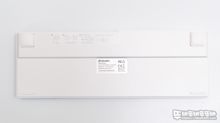 키보드 바다면은 플라스틱 소재가 사용되었으며 매뉴얼이 없더라도 빠르게 사용할 수 있게 페어링 방법이 인쇄된 스티커가 부착되어 간편하게 사용할 수 있게 도움을 줍니다.
