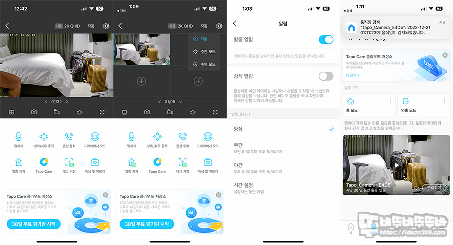 특히 Tapo C225 본체에서 나는 경고음과 동시에 스마트 기기에 알림 정보를 띄워주기에 꽤 유용하며 영상에 담지 못했지만 쌍방향 음성통화 및 현장 상황을 들을 수 있는 모니터링 기능 등 CCTV 기능으로 상당히 괜찮은 기능을 확인할 수 있었습니다.