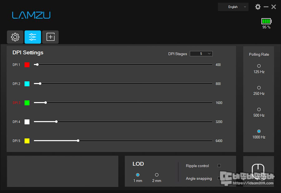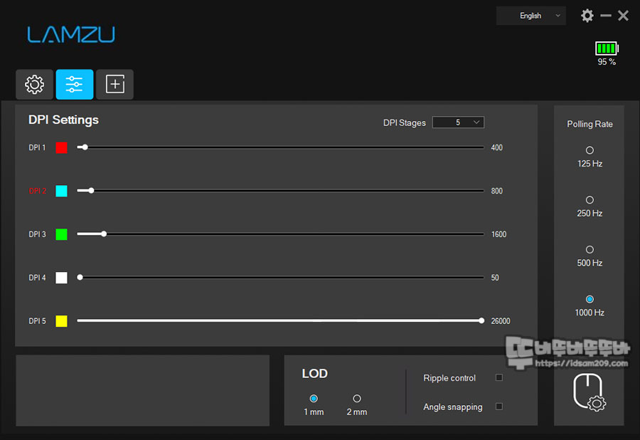 그 외로 USB 폴링 레이트, LOD, 리플 컨트롤, 앵글 스냅 설정을 지원하니 잘 활용하시고요.