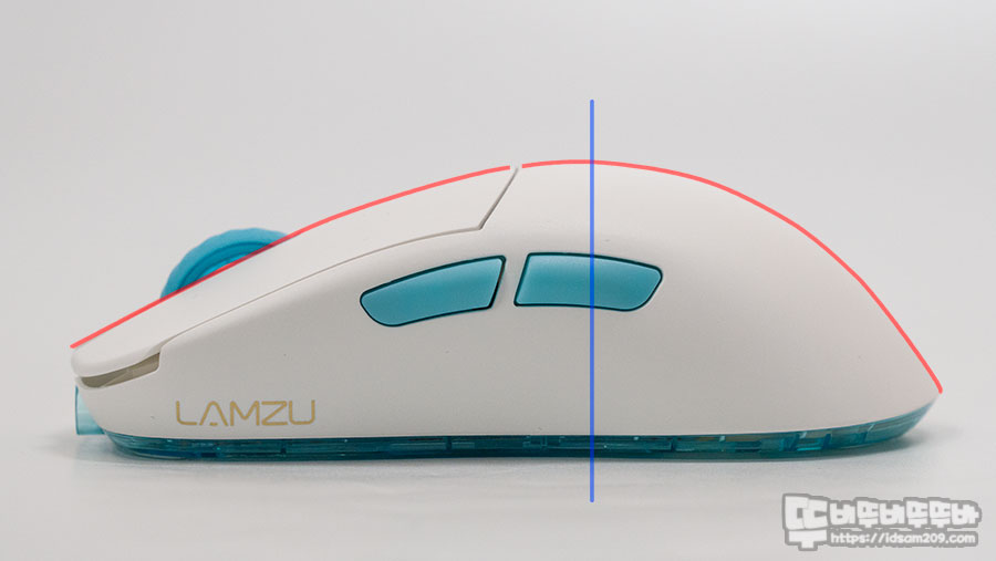 전체적인 디자인이 Endgame Gear XM1r와 비슷한 느낌이지만 하우징의 높이와 버튼 쪽의 경사 각도가 람주 마우스가 높은 편이라 그립 면에서는 더 안정적인 느낌을 줍니다.