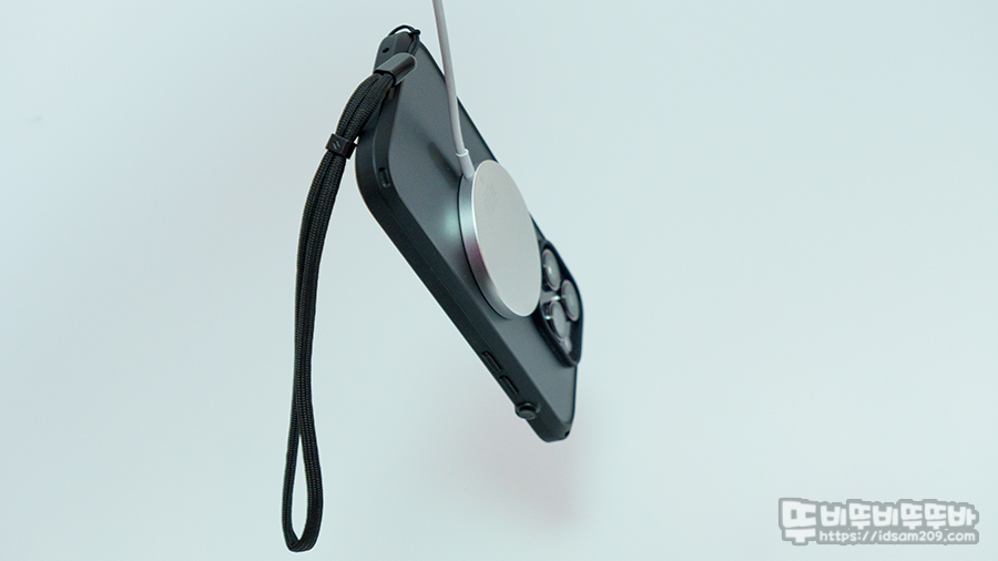 맥세이프 케이스와 CNS파워 커네틱 마그네틱 고속 무선 충전기를 부착하면 공중에 매달려도 떨어지지 않을 만큼 강력한 자력을 느낄 수 있습니다.