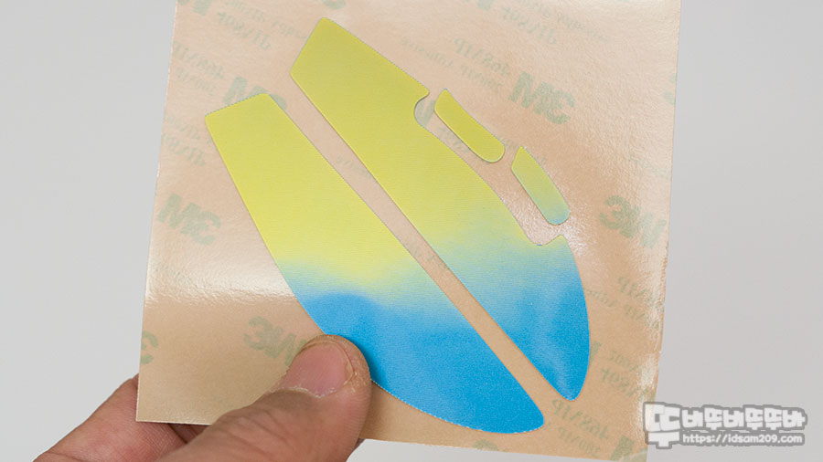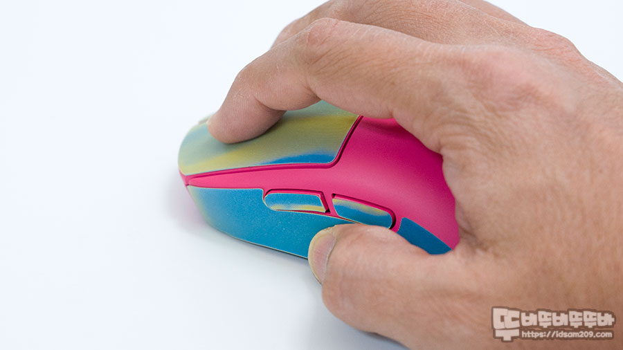 앞서 설명드린 대로 검지와 엄지손가락 위치에 그립패치 삼각형 패턴 디자인이 다르게 적용되어 안정적인 마우스 그립을 지원하며 그립 패치의 두께감이 없어 마우스 하우징 느낌을 선호하시는 분들이 사용하시면 좋을 거 같아요.
