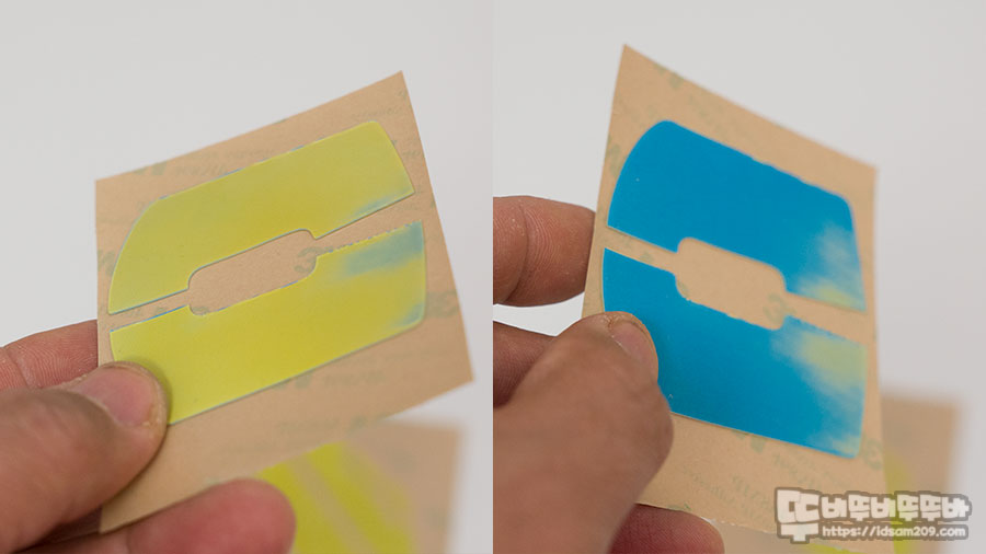 앞서 설명드린 대로 유연한 실리콘 소재라 그런지 그립패치를 부착 시 위 사진과 같이 공기층이 발생하는 경우 그립패치를 살짝 떼어내어 다시 부착해 주시면 되는데요.