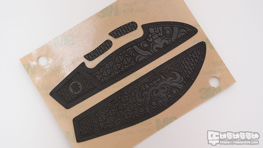 클라우드 슬림 논슬립 패치는 0.1mm 초슬림 두께와 중세 갑옷 느낌의 디자인이 적용되었으며 마우스에 부착 시 두께감이 없는 편이라 마우스 하우징 느낌 그대로 패치를 사용하고 싶은 분들에게 최적의 제품이 될 거 같습니다.
