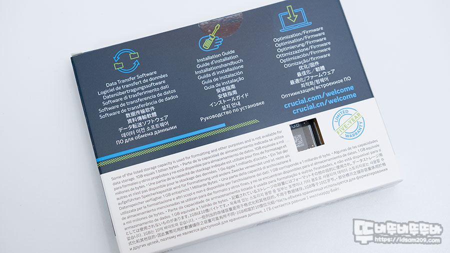 마이크론 Crucial P5 Plus M.2 NVMe 패키지에는 이전 모델과 구별이 되는 P5 Plus 이름의 공용 패키지에 유통사 아스크텍 정품 인증 홀로그램 스티커와 용량 500GB를 표기하고 있습니다.