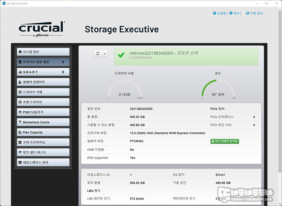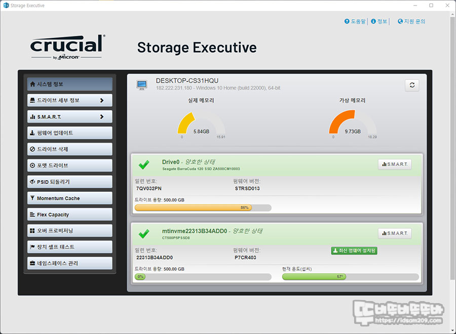Crucial Korea 사이트를 통해 다운 받을 수 있는 SSD 관리 프로그램인 Crucial Storage Executive를 간단하게 살펴보겠습니다.