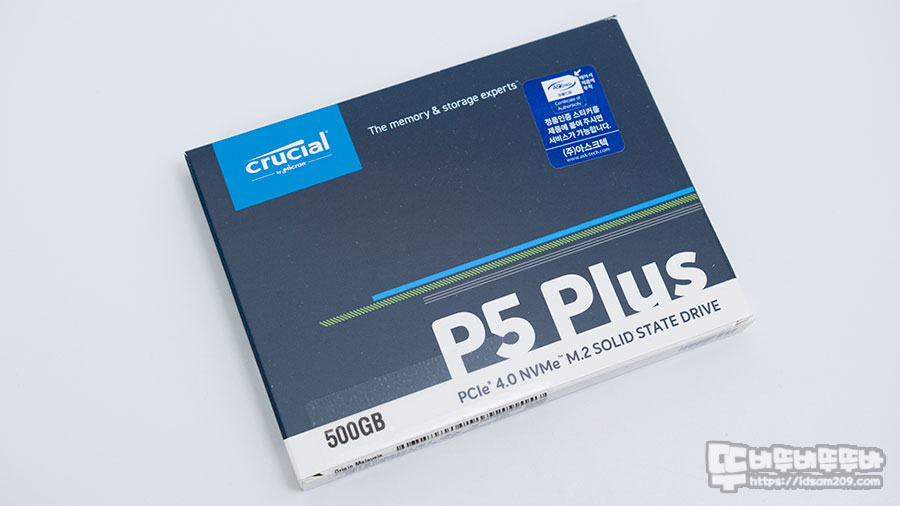 마이크론 Crucial P5 Plus M.2 NVMe 패키지에는 이전 모델과 구별이 되는 P5 Plus 이름의 공용 패키지에 유통사 아스크텍 정품 인증 홀로그램 스티커와 용량 500GB를 표기하고 있습니다.