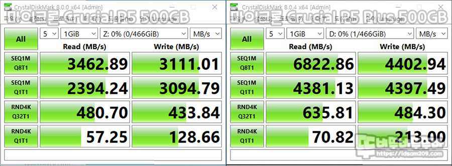 이전에 리뷰했던 PCIe 3.0을 지원하는 P5 Plus 모델과 비교 시 확실하게 성능 향상을 확인할 수 있습니다.