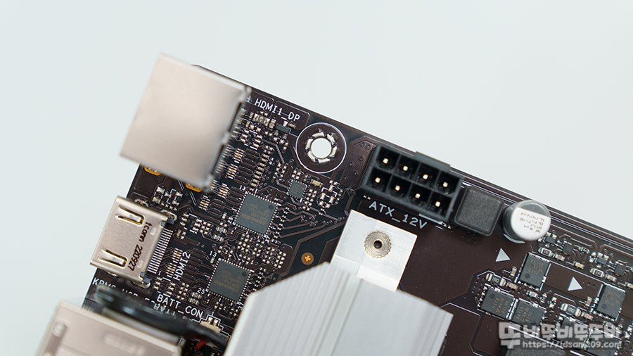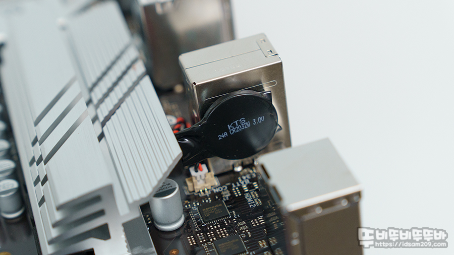 메인보드에 코인전지가 없어서 보드를 살펴보니 커넥트 형태로 변경하여 I/O 포트 측면에 부착되어 있는 것을 확인할 수 있는데 혹시라도 코인전지를 분리해야 하는 상황이 발생한다면 메인보드에 연결된 2핀 커넥터를 뽑으시면 되니 참고하시기 바랍니다.