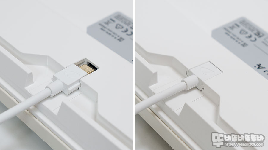 다얼유 A87PRO 레트로베이지는 키보드 바닥면에는 3 Way 방식으로 케이브를 고정할 수 있는 홈으로 사용자의 편의성을 더해주고 있고요.