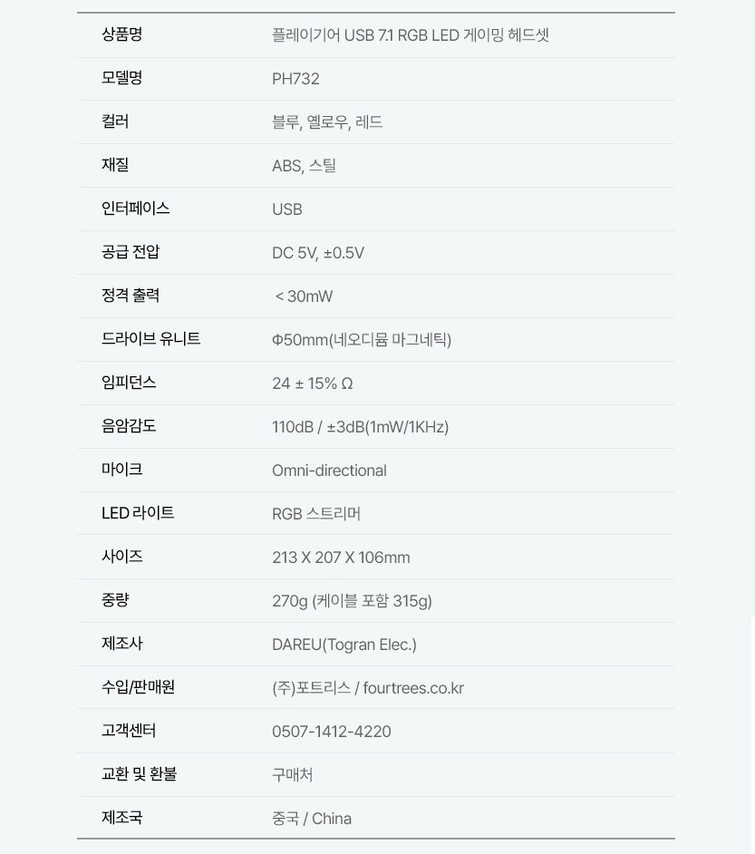 #포트리스 #fourtrees #PlayGear #플레이기어 #PH732 #USB7.1 #RGB #LED #게이밍헤드셋 #뚜비뚜비뚜뚜바 #idam209