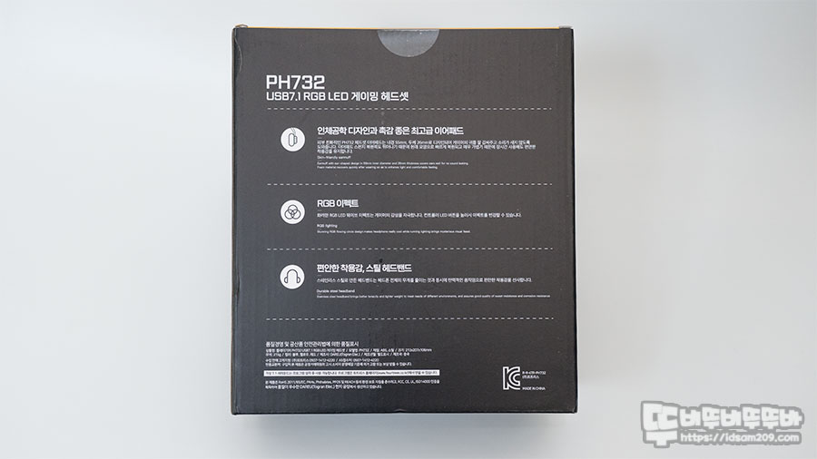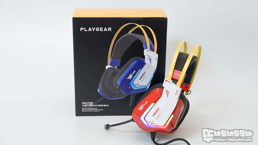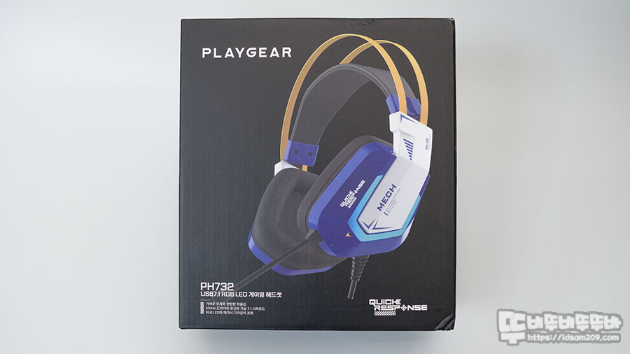 플레이기어 PH732 USB7.1 RGB LED 게이밍 헤드셋 패키지 모습입니다.