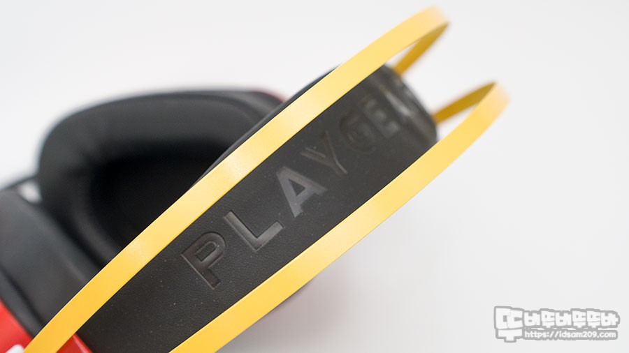 헤드셋은 노란색 컬러의 스틸 와이어 밴드가 포인트를 주고 있으며 헤어밴드 상단에는 PLAYGEAR가 각인되어 있는데요.