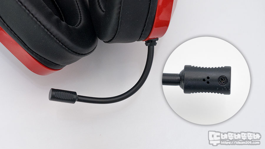 일체형 마이크는 헤드셋 하우징에 부착된 마이크 몰딩에서 마이크 끝까지 약 100mm 길이로 조금 짧게 느껴지지만 철사가 내장된 PVC 재질로 밴딩이 자유로운 편으로 음성 전달은 적당한 편입니다.