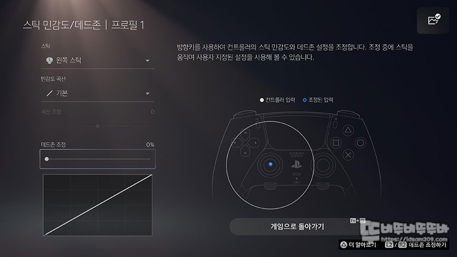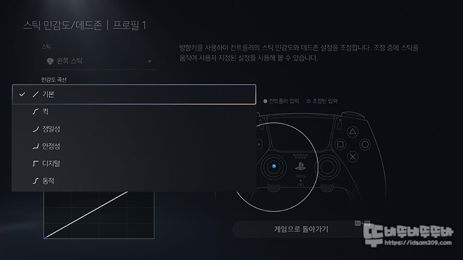 몇몇 기능은 On/Off 형태로 선택하지만 스틱 민감도, 데드존 설정은 범위 설정과 민감도 곡선 형태로 조절을 하게 되는데요.