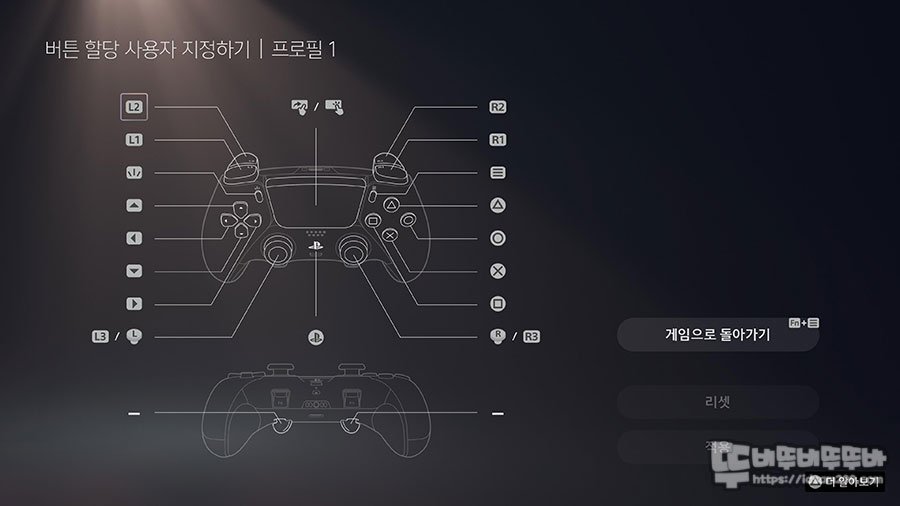 PS5를 구동하고 듀얼센스 엣지를 연결하면 위와 같은 가이드 실행 화면이 나타납니다.