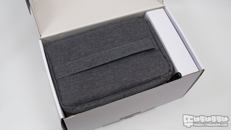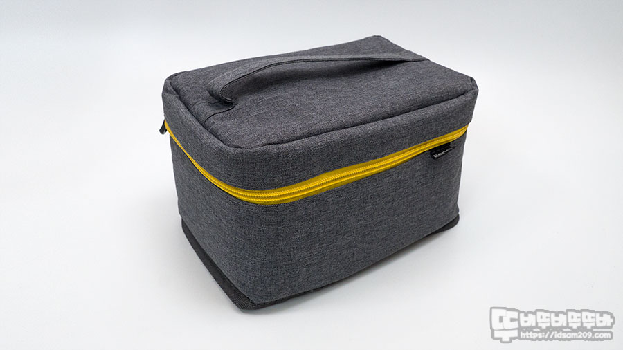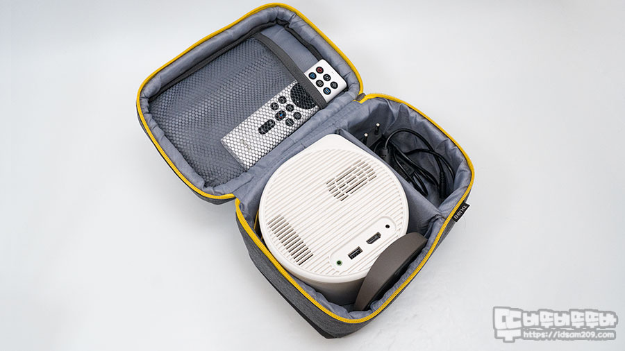 GV11 포터블 빔프로젝터와 전원 아답터, 리모컨이 수납되는 꽤 실용적으로 디자인되어 휴대하기 좋은 편입니다.
