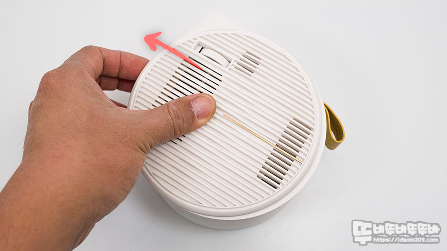 수동 포커싱 다이얼이 있는 왼쪽 하우징을 사진과 같이 즈가 있는 전면으로 밀어서 오픈하면 미러링 스틱을 수납할 수 있는 공간을 확인할 수 있는데요.