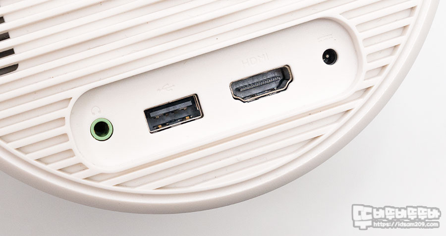 제품의 외부 조작은 심플한 편으로 왼편에 수동 포커싱 다이얼 오른쪽에는 전원 소켓, HDMI 단자, USB-A 단자, 스테레오 OUT 단자로 구성되어 있습니다.