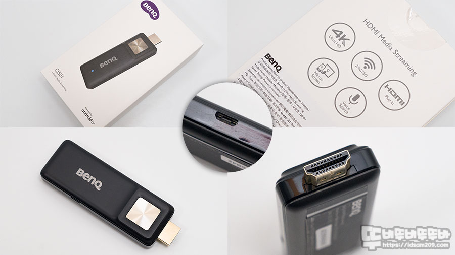 사진과 같이 동글 스틱 측면에 전원을 연결하고 안쪽의 HDMI 단자에 스틱을 연결하면 모든 과정이 마무리됩니다.