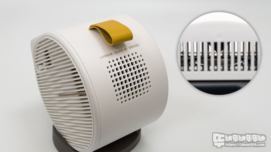 나름 중요한 BenQ GV11 포터블 빔프로젝터와 받침대 구조를 간단하게 살펴보면 받침대 끝부분에 위치한 구슬 같은 돌기가 프로젝터 본체 측면에 원형으로 파인 가이드 부분에 결합되면서 고정되는 구조인데요.